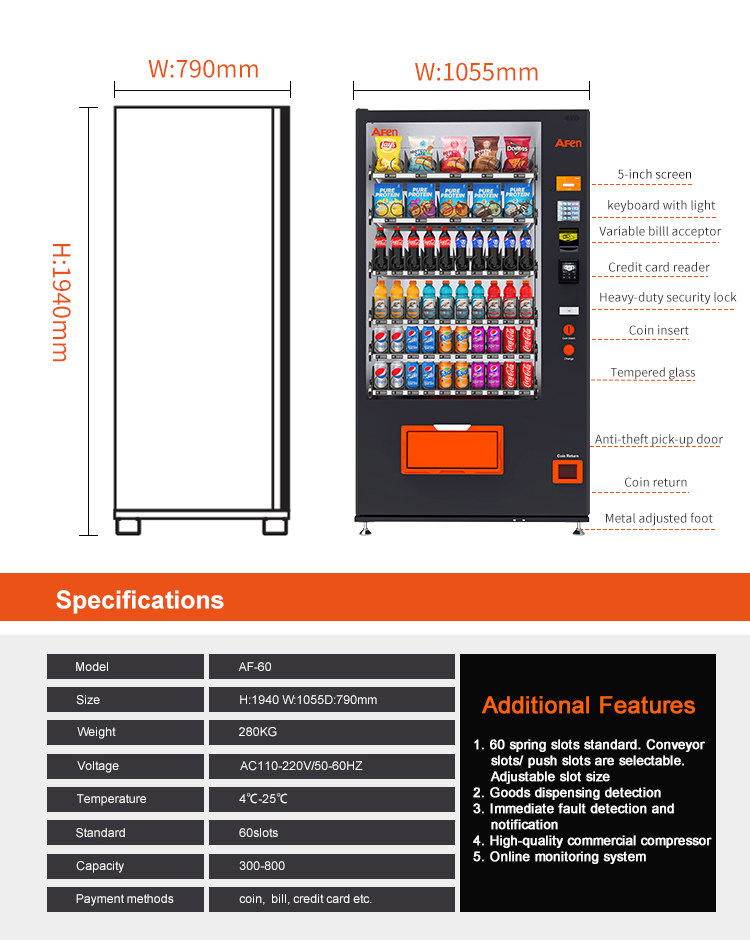 Multi-Type Product Sales: Supports the sale of bottled drinks, canned beverages, bagged snacks, boxed items, and more.