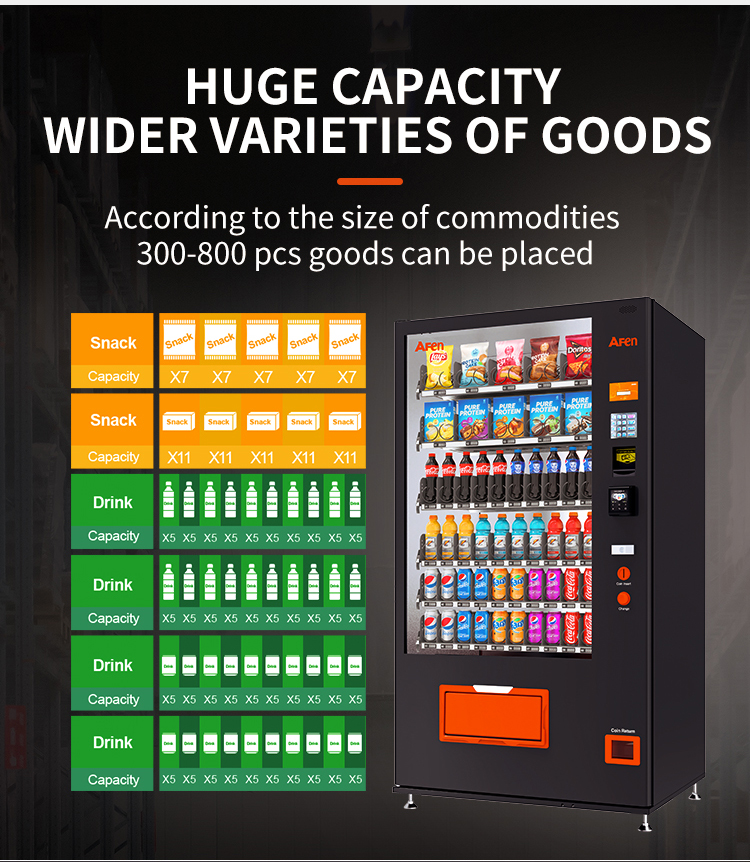 High Storage Capacity: Holds 300 to 800 products (depending on the model), reducing restocking frequency.