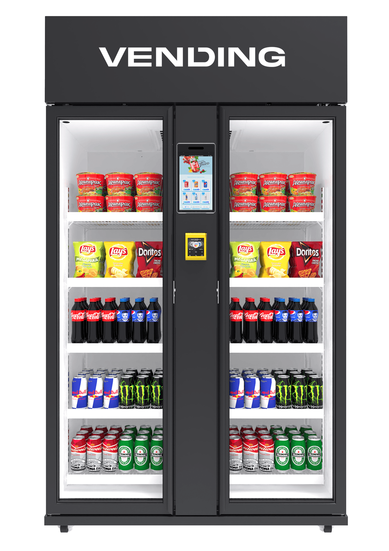 • Keep products perfectly chilled with 1074-Nayax of spacious, frost-free storage and 360° energy-saving air cooling—ideal for beverages and snacks in high-traffic areas.